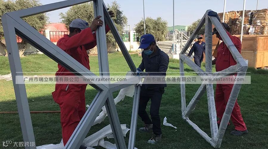 2.玻璃球形帐篷屋的结构是什么?——铝合金框架,可处理不同颜色的效果。