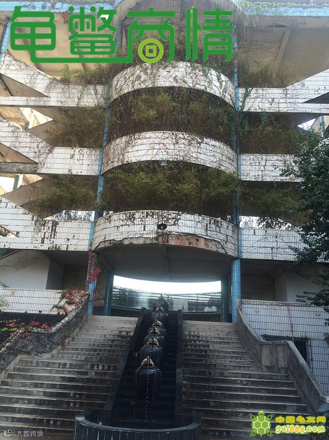 万龟园外围是客家围屋,占地面积16.96亩,直径120米。围屋内有一栋九层的万龟楼,高50多米、长80多米,宽60多米。万龟园既是一个旅游景点,也是“龟的度假村”。万龟园外观看像一座山,实际设计是仿野生态的龟池,龟在山洞里生活,在山坡上晒太阳;另外设计的瀑布从八楼飞泻而下,形成一幅壮观的景观。相信这些理念的设计能全部实现,而且比设计图更美丽、更富有立体感。公司计划十年内实现养殖种龟超过10000只。
