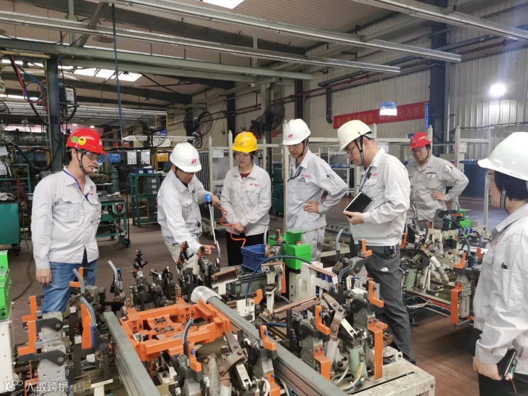 社长(左二)带领CFT小组成员在生产现场找降本素材