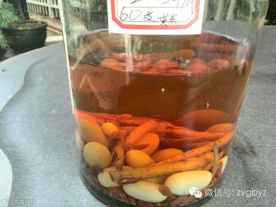 (2)将龟蛋和材料放入装有60度白酒的玻璃瓶里,浸泡一年以上可饮用。