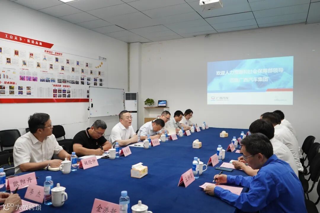 随后,覃朝俊一行听取了集团技能人才工作调研报告。覃朝俊为广西汽车集团积极开展企业内外职业技能等级培训及认证的做法点赞,表示“有利于把广西汽车产业做强做大”。了解到集团有印尼、印度两大海外生产基地,并积极实施技能援企出海计划,与职业院校合作来柳开展技能培训,覃朝俊对集团在高技能人才培养方面所付出的努力和取得的成果给予了充分肯定。