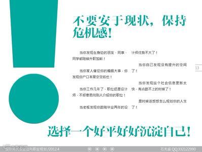 小公司肯定想要发展为大企业,这是一种目标,年轻人也要给自己的职业生涯制定目标。毕业几年的你,是否经常会怯场或者是感到没有底气?居安思危绝对不是危言耸听!此刻打盹,你将做梦;此刻学习,你将圆梦。在竞争激烈的人生战场上,打盹的都是输家!