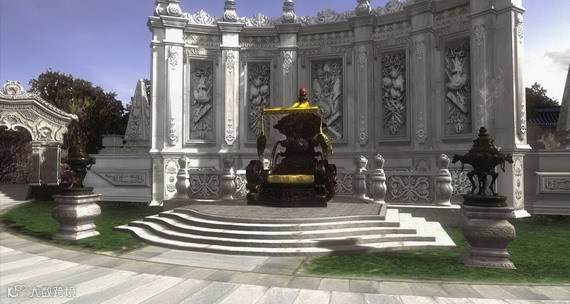 南边朝北建有专供皇帝观赏喷泉用的宝座和石雕屏风,名曰观水法。