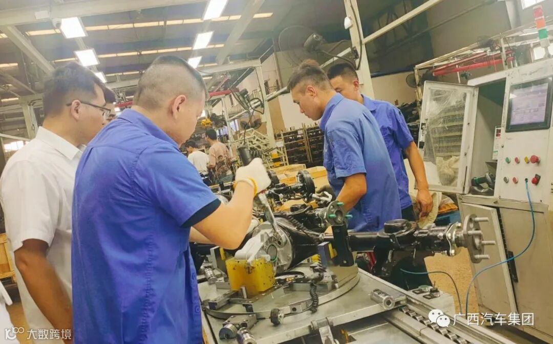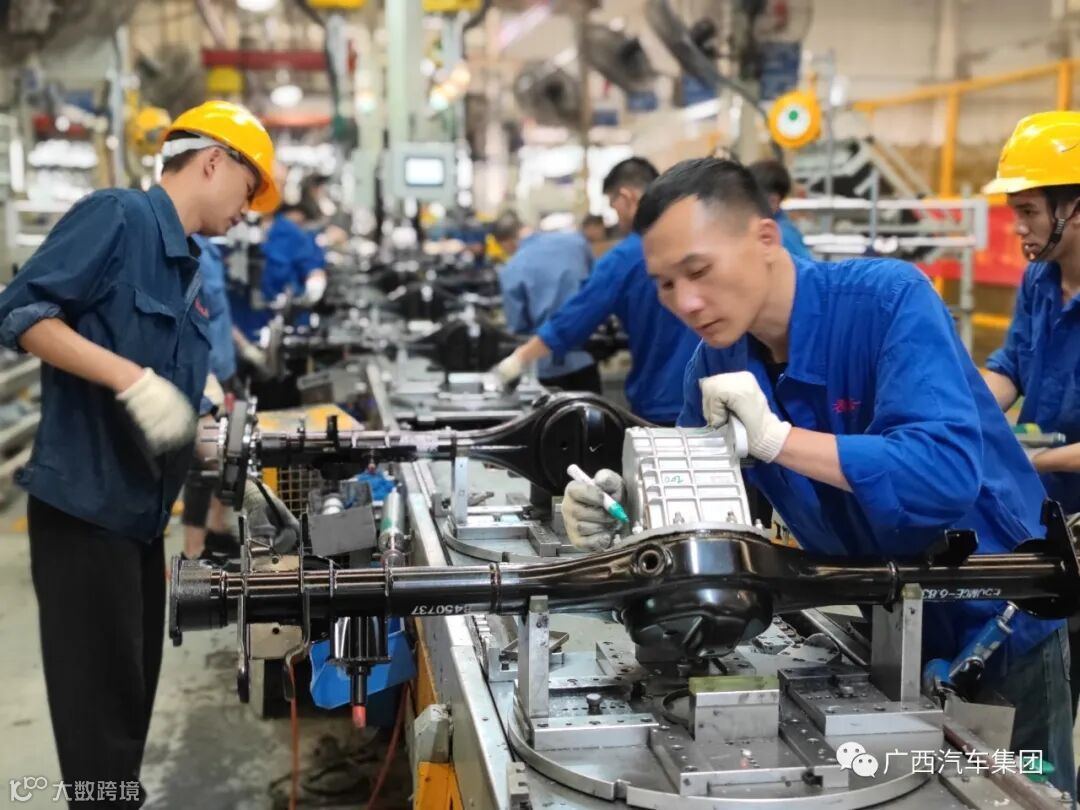 开“蒸”,为了满足客户需求,生产现场热火朝天。进入2022年下半年后,电动桥系列车型迎来了产量高峰期,为满足客户需求,桥壳焊接产线等人停机不停,通过产线改造,增加工装设备等方式提升产能,满负荷输出。