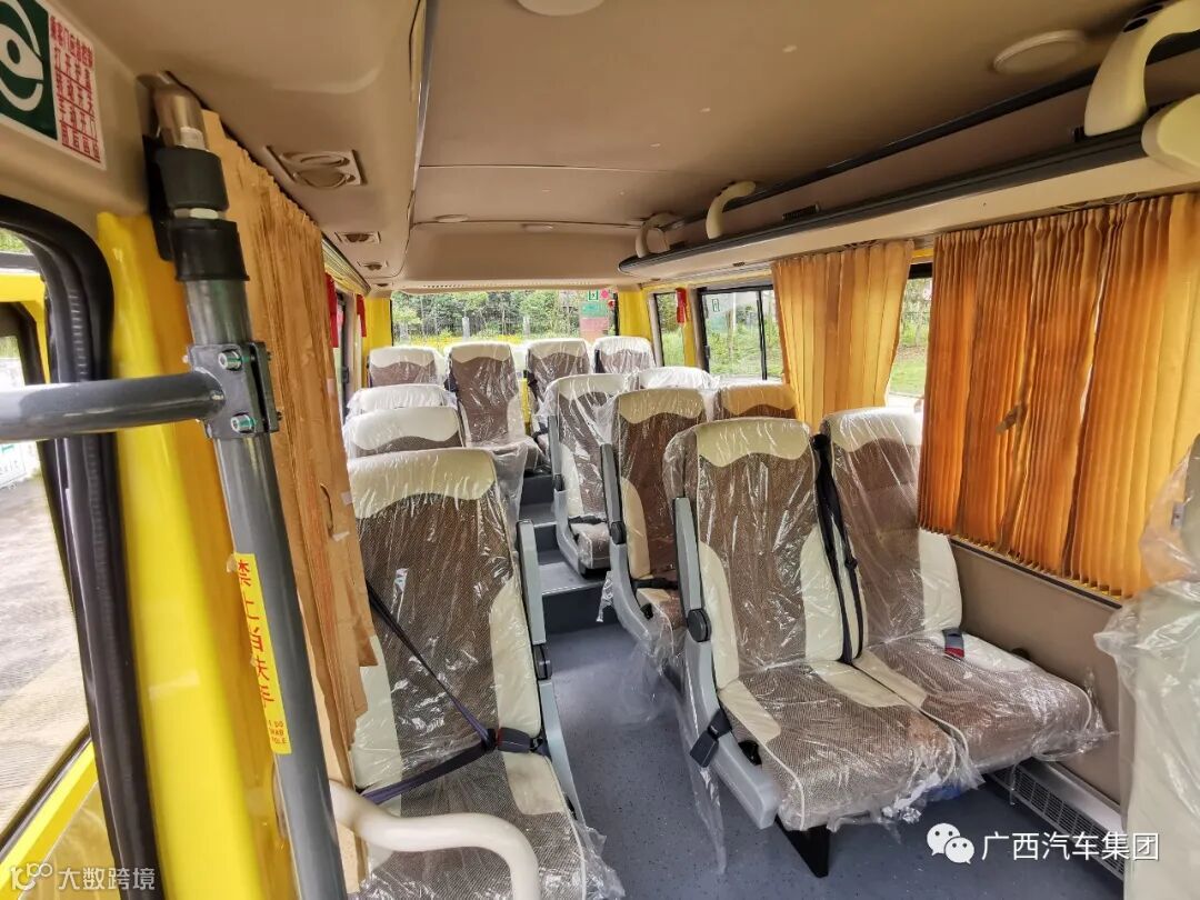 车辆采用玉柴发动机黄金动力总成,在限定工况下,百公里平均油耗为0.5元/公里,性能可靠。5.5米车身采用13+1座布局,搭配人体工程学设计的商务座椅,环保面料,驾乘更舒适健康。
