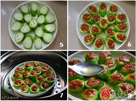 7、 蒸锅里水沸腾后,将丝瓜虾盅和调味料一同上锅蒸,大火3--5分钟关火,再焖1分钟即可出锅,最后将蒸好的调料淋在丝瓜虾盅上即可。小贴士:剁椒和蒸鱼豉 油都含有盐,所以不需要再加盐了。蒸的时间3-5分钟,断生后再焖一分钟即可,否则蒸久了虾肉变老,丝瓜盅也会过于软烂而无法站立。