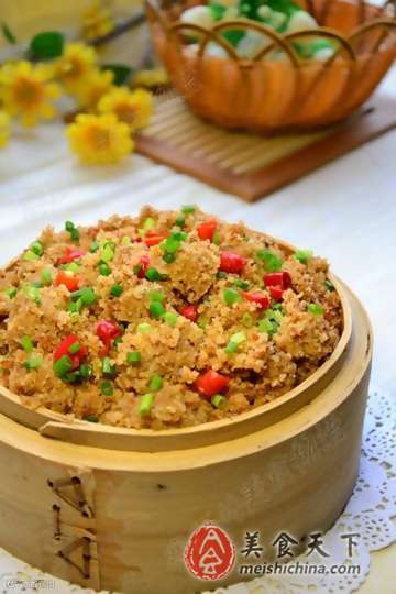10、冷水上锅,大火开后再蒸上15分钟,蒸熟后取出,洒上葱花即可即用
