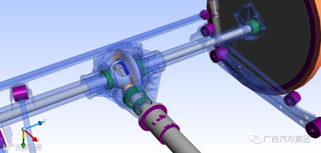 汽车NVH(噪声、振动与声振粗糙度)是汽车性能的关键指标之一,直接影响汽车的品质和档次。驱动桥作为公司底盘零部件重点业务之一,运用专业的传动系统分析软件,建立了包括准确齿形在内的完整后桥悬挂系统仿真分析模型,模拟驱动桥的实际运行状态,分析驱动桥齿轮啸叫、共振等NVH问题产生的原因,以此指导齿轮修型、问题零部件改进等工作。