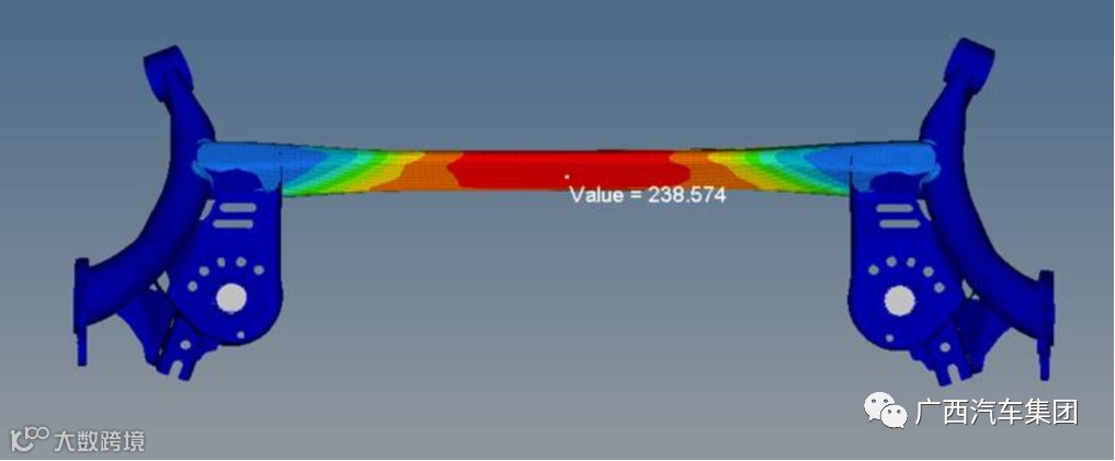 该技术应用于长城某车型扭力梁上,最终测试结果与CAE分析结果偏差仅为5%,一致性较高。经过CAE仿真与试验一致性验证,提高了CAE结果的可靠性。