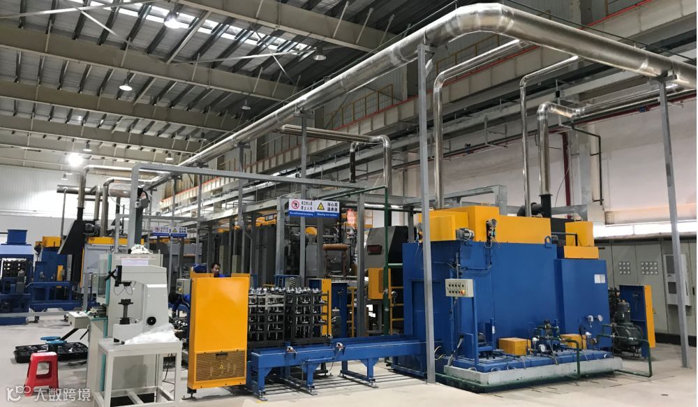 CVT变速箱零部件车间配备有德国DMG车銑复合中心,爱协林热处理线、螺纹磨床;差壳生产线桁架机器人,整线智能CPS控制系统。爱协林双推盘热处理线,用于带轮产品渗碳处理,设备生产效率高,工艺稳定性好,零件质量一致性高。