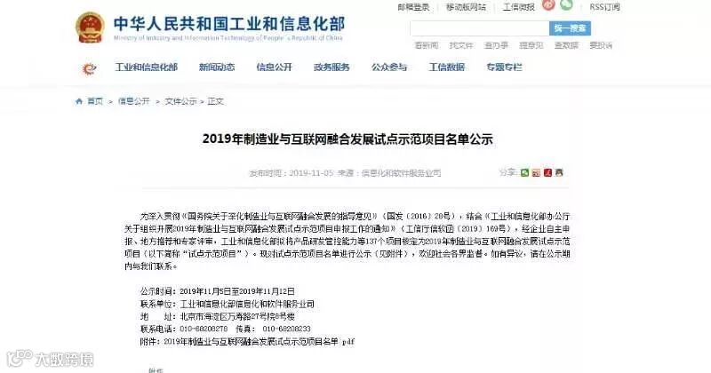 近日,工业和信息化部公示了