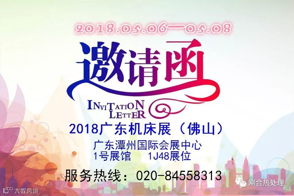 风雨兼程,刚合十三载,感谢您对刚合一如既往的支持与鼓励。我司将于 2018年5月6日-8日于广东潭州国际会展中心(佛山·北滘)参加2018广东机床展。希望通过这次机会和广大新老客户朋友共同探讨和交流, 以便我们有进一步的合作机会,共同开拓市场。广州刚合热处理有限公司在展馆1号馆、展位1J48号恭候您的光临。另有精美礼品赠送!