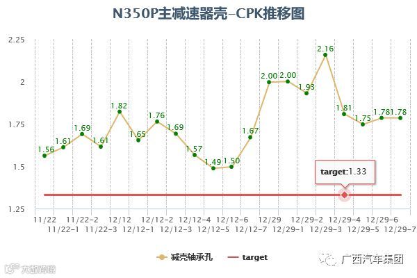 2017年CPK工作延伸到供应商,监控采购件产品质量,推动供应商进行CPK提升工作,预防不合格品的产生,降低成本。比如,通过调整进给速度等加工参数,半轴CPK由1提升到1.39,合格率接近100%。