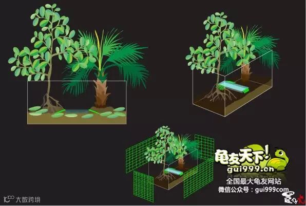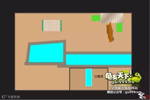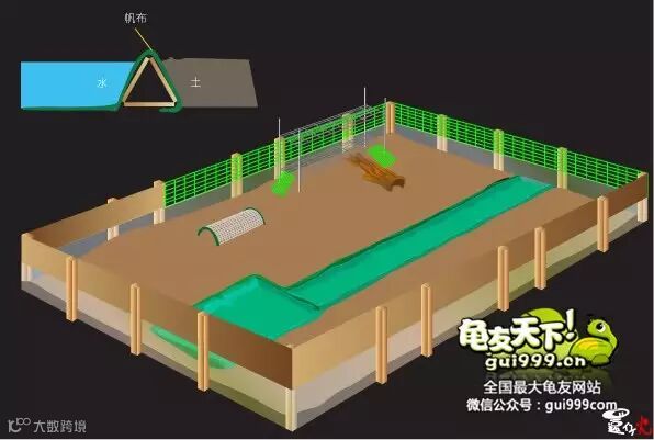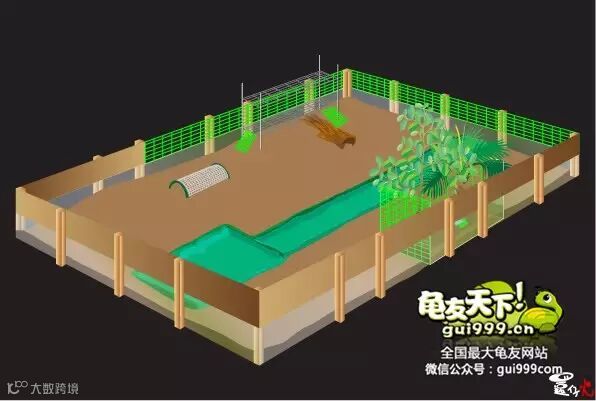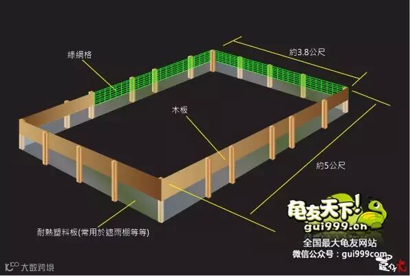 基本上同样是以绿网格在龟园裡隔出一块约一公尺馀乘以80公分左右的区域(微信号:龟友天下)