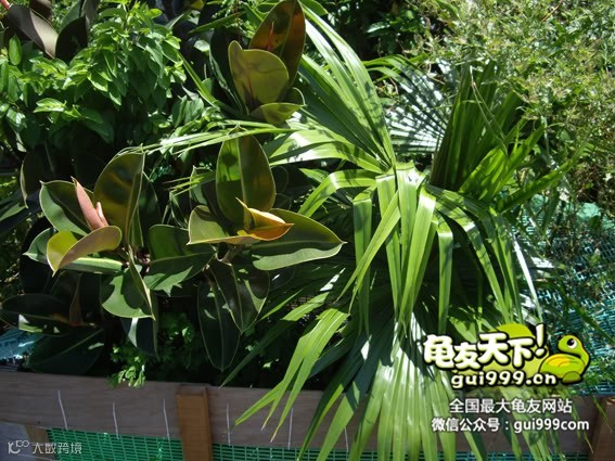 加入植物 抱歉我对植物真的懂得很少 基本上都是原有的还有跟亲朋好友要的盆栽 不过现在都把盆已去掉 直接种在龟园裡 还有许多自己长出来的