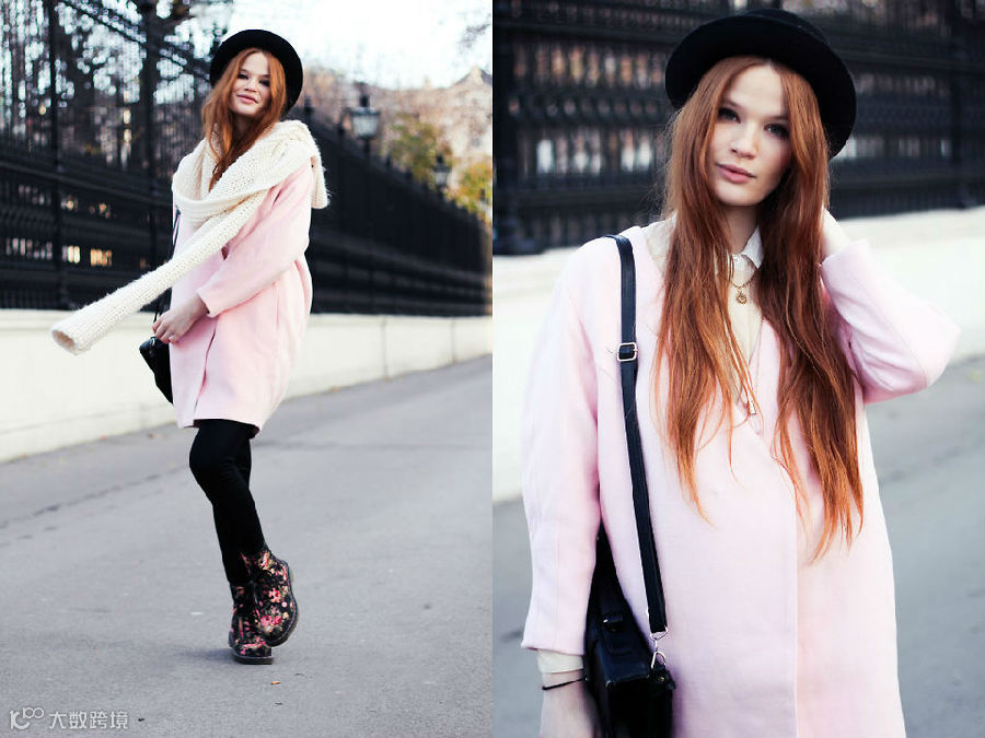粉红色系的的搭配,让整个人看上去柔和很多。