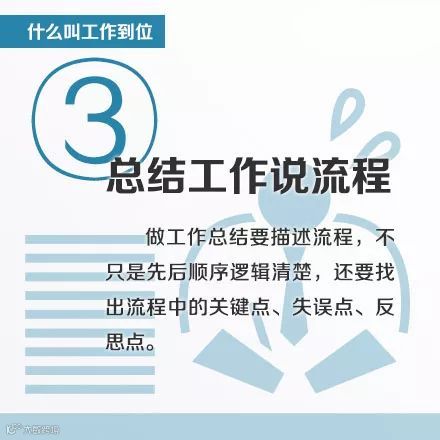 做工作总结要描述流程,不只是先后顺序逻辑清楚,还要找出流程中的关键点、失误点、反思点。
