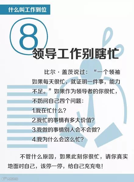 工作有布置就有考核,考核就要建立工作标准,否则下属不知道如何做,做到什么程度才是最合适的。标准既确立了规范,又划定了工作的边界。