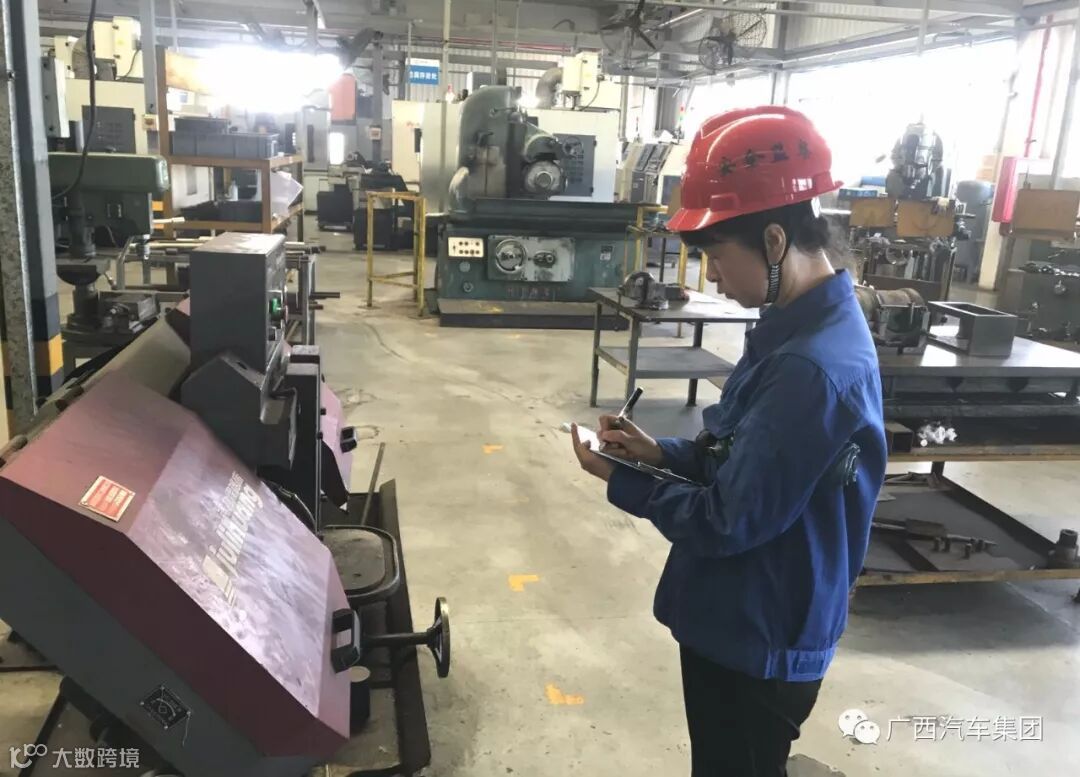 虽然是两个孩子的妈妈了,但每次都要亲自检查钣金外观质量