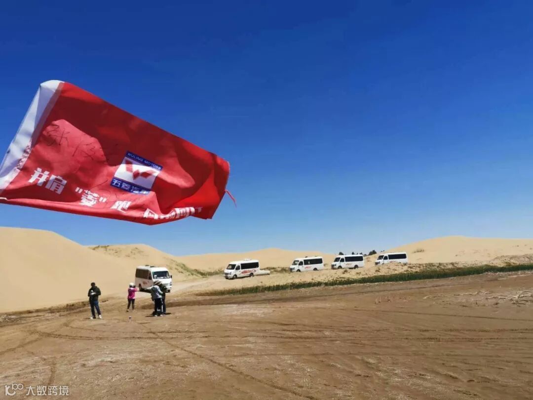 五菱房车队气势宏大,所到之处沙尘飞扬