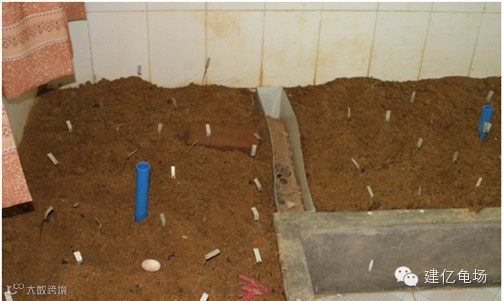 龟产完卵后,立即取出龟卵,移入孵化室孵化。收集龟卵时,通常用手轻轻拿起,放入铺好湿沙土的小盆内,龟卵的方向不能变化。如果发现已经有变化的受精卵,最好不要转移龟卵,就地用菜篮盖好孵化即可,不然将影响孵化率。