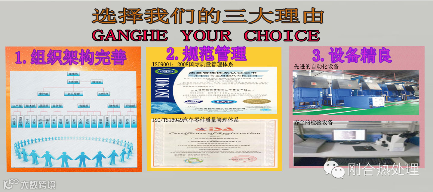 刚合热处理获得ISO9001:2008国际质量管理体系及ISO/TS16949汽车零件质量管理体系认证、拥有先进的全自动生产设备及齐全的检验设备、组织架构完善。