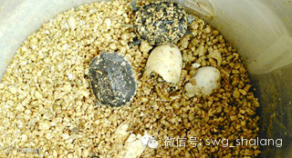 运输包装:普通胶桶,先放30公分调好湿度的蛭石,然后排好龟蛋,再铺上20公分蛭石,盖好盖子画好南北线。