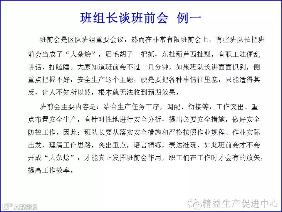 班组长如何开好班前会(含各行各业班前会案例)
