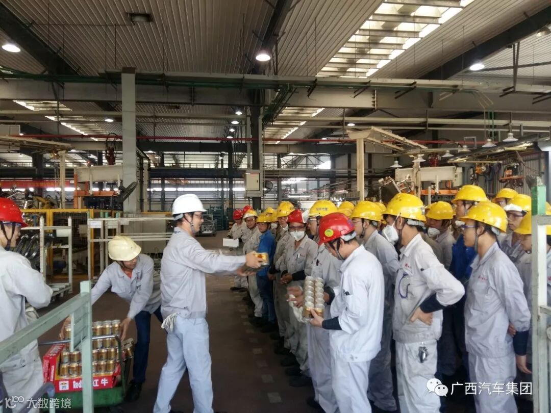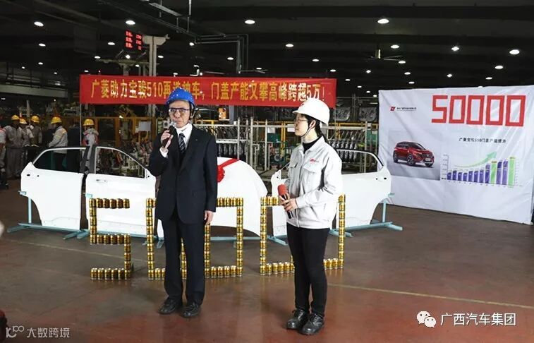 1月31日20:00,伴随着“咣咣咣,咣咣咣……”庆祝声,集团所属公司广菱技术在量产生产线旁,举行了主题为“广菱助力宝骏510再造神车,门盖产能又攀高峰跨越5万”的简短纪念仪式。日本HTC董事、广菱技术副董事长田村茂、广菱技术总经理镰仓雄司、广菱技术常务副总经理曾旺,以及广菱技术部课长参加了此次仪式。