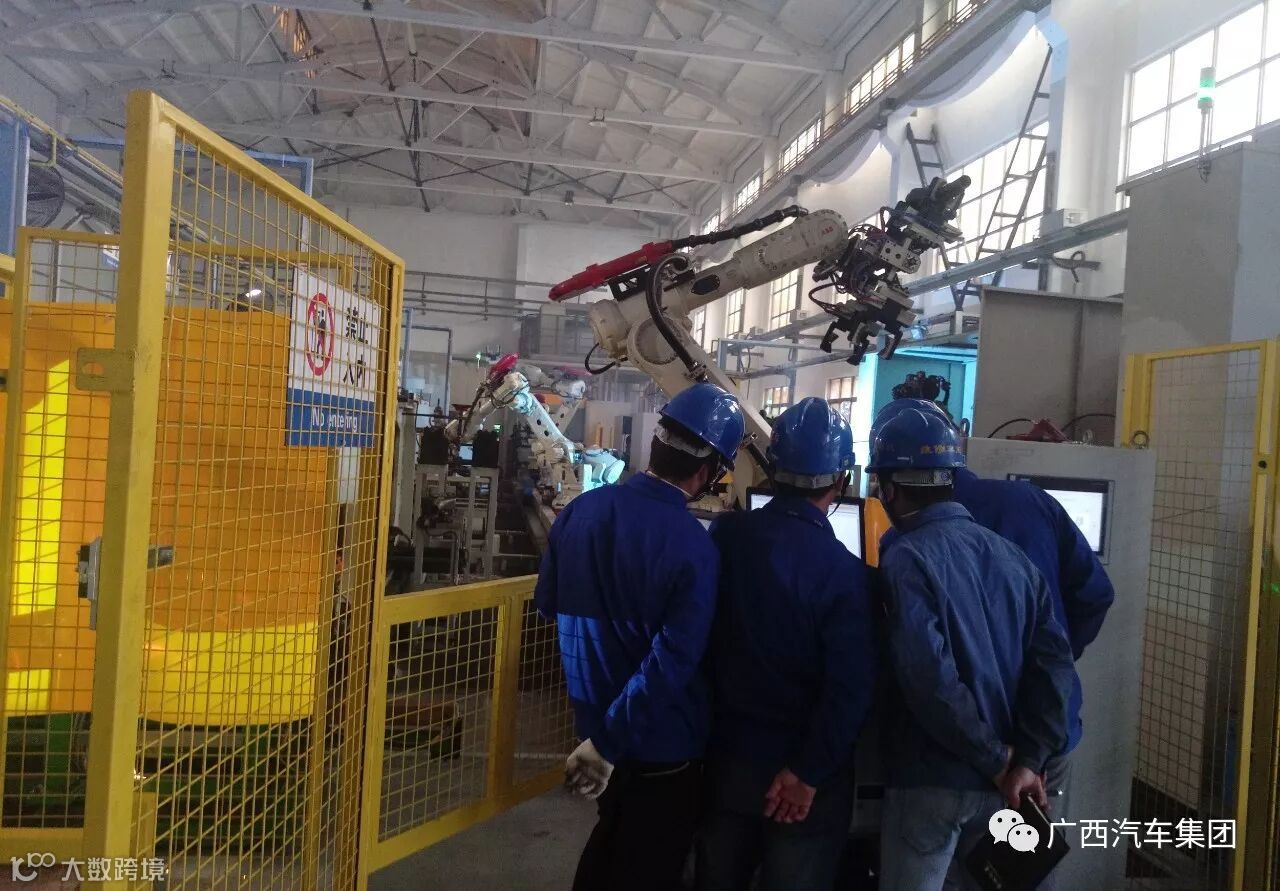 为提高车桥厂自动化线生产效率,工程师与工段讨论优化搬运机器人轨迹。