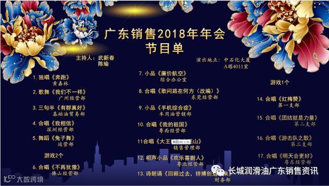 为迎接春节的到来,丰富员工业余生活,倡导健康向上的企业文化理念,广东销售工会于2月7日在广州市中石化大厦举办了“金狗贺岁,扬帆起航,共赢犬年”为主题的迎春文艺晚会。