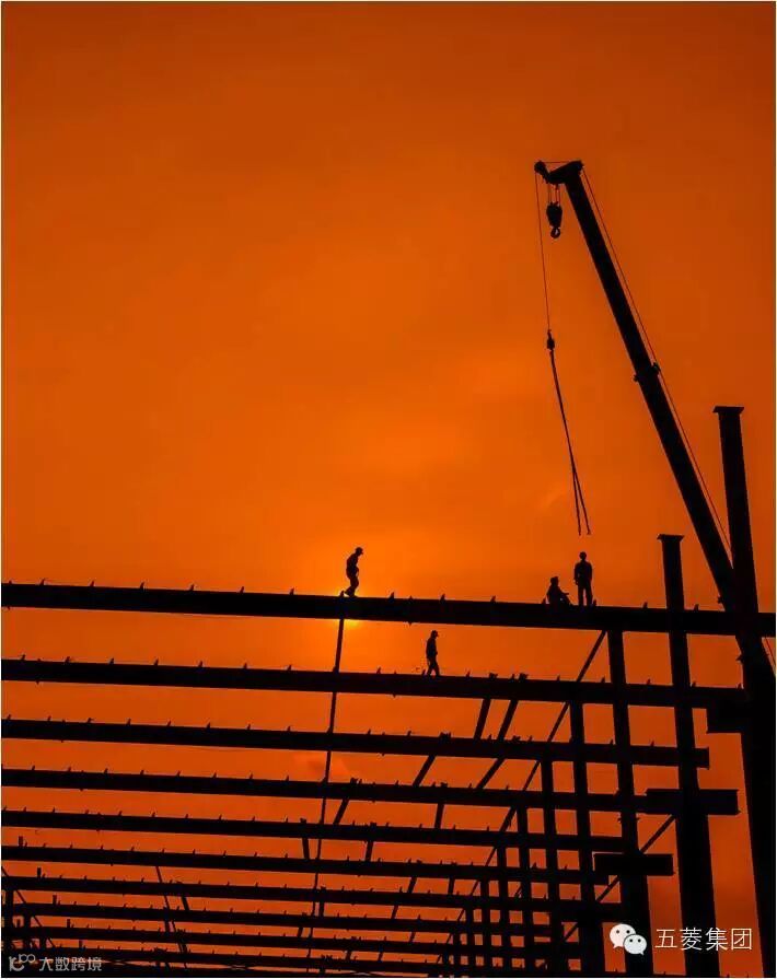夕阳下,柳东基地厂房钢结构施工现场美景如画。