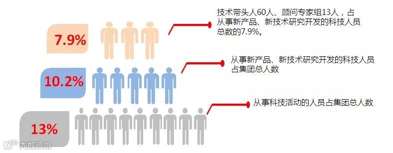 公司逐步优化科研人员比例,2015年从事科技活动的人员1173人,占企业职工总数的13%;从事新产品、新技术研究开发的科技人员923人,占企业职工总数的10.2%;技术带头人60人、顾问专家组13人,占从事新产品、新技术研究开发的科技人员总数的7.9%。