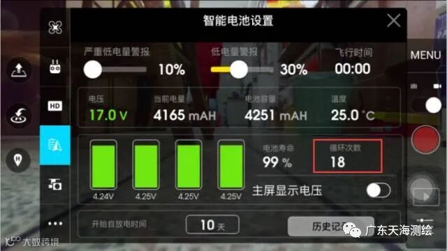 我们进入电池操作界面后,找到右上角电池电量显示图标,点击进入智能电池信息界面,在右下方的位置可查看电池循环信息。(ps:据机长与客服了解,由于出厂检测原因,循环在0~2次属于正常现象,不必担心)