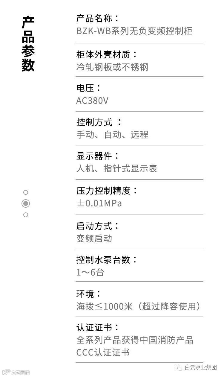 BZK-WB系列无负压变频控制柜由水泵专用型变频器、可编程序逻辑控制器、触摸屏、进出水压力传感器、水泵启动元件和水泵保护元件等组成,采用闭环控制,能自动调节水泵的转速和运行台数,使供水管网的压力保持设定的压力和所需流量,从而达到提高供水品质和高效节能的目的。 可广泛适用于工农业生产、各类建筑的给水增压以及暖通空调冷热水循环等多种场合的自动控制。