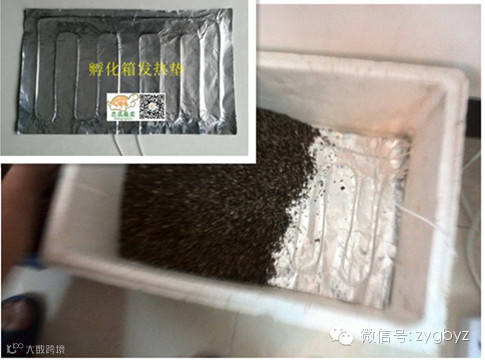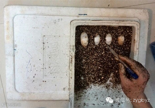 6、广东、广西大部分地区4、5月份捡到的受精卵因气温偏低,建议加温孵化即泡沫箱底部加一块加温垫,这样更有利于龟卵胚胎发育。5月份夜晚最低气温如果超过23℃,就可以关掉加温电源进入常温孵化。