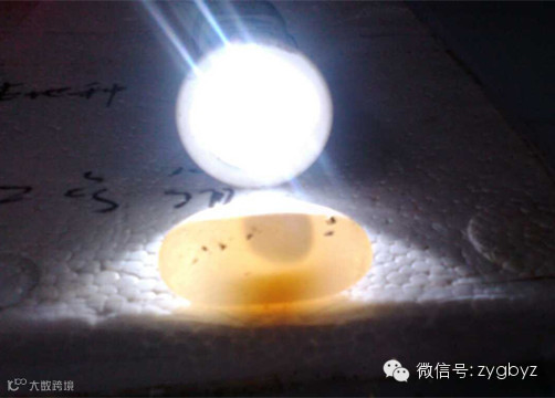 5、充分和匀的蛭石用干净的胶袋装好备用;查看蛋是否受精(强光照射下检查)。