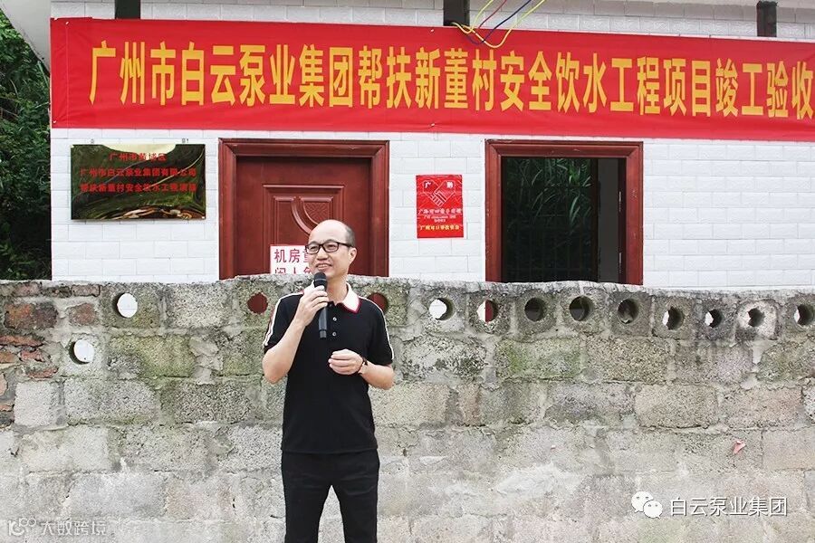 在项目验收讲话环节,孙建云董事长首先感谢广州市、黄埔区工商搭建和提供这个平台,使白云泵业能够加入到精准扶贫的企业队伍中,更加深入的了解深度贫困村的现状。此次安全饮水工程只是帮扶的起点,未来,白云泵业将与新董村的全体村民一道,在脱贫、摘帽、奔小康的道路上给予更多的帮助,承担更多的社会责任。最后,他希望村委能组织专人进行日常管理,确保该项工程能给广大村民持续提供安全、健康的饮用水。