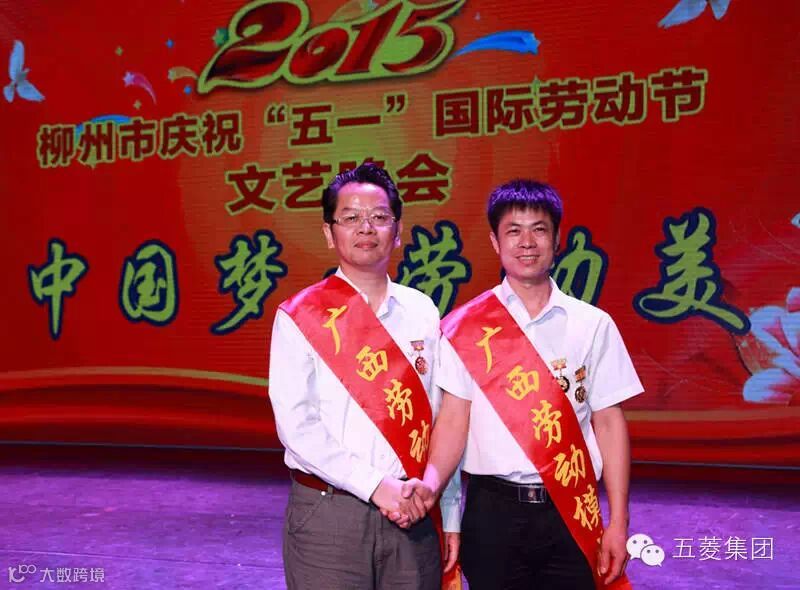 劳动创造财富,奋斗谱写辉煌。4月30日,2015年自治区劳动模范和先进工作者表彰大会在自治区党委礼堂隆重举行。共499名劳模先进在大会受到表彰,其中,五菱集团董事长韦宏文、高级专家郑志明被授予2015年广西壮族自治区劳动模范。