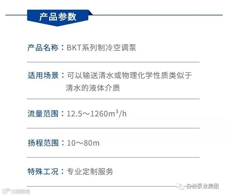 BKT系列泵主要用于中央空调冷却水、冷冻水循环;中央热水器、直燃式中央空调卫生热水的输送循环;工艺流程热交换介质循环;城市集中供暖、供热系统热水输送循环。