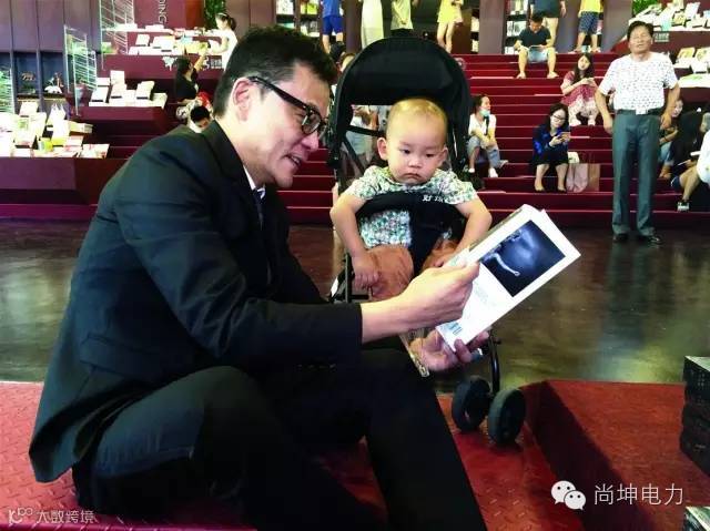 当当梅溪书店开业当天,李国庆和小孩在一起