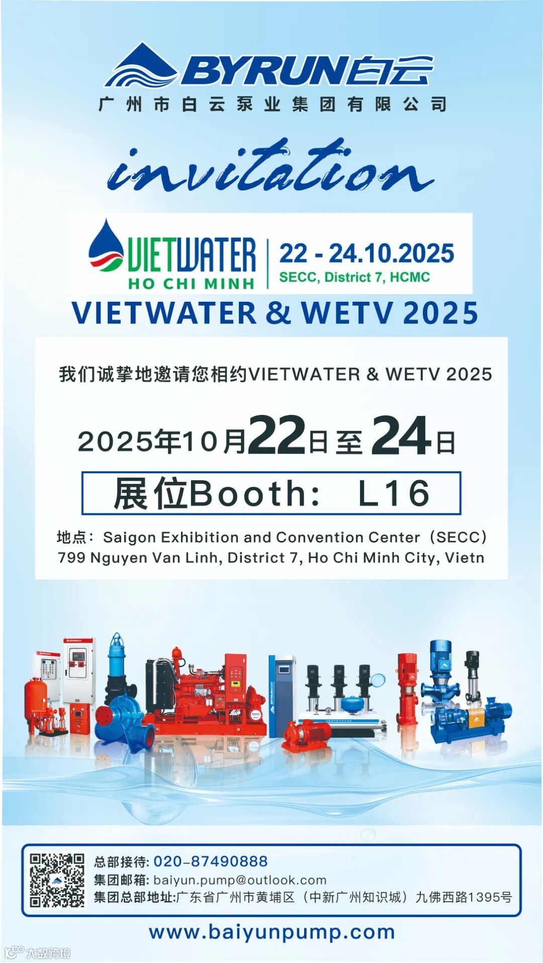 金秋十月,机遇之约。我们诚挚地邀请您莅临 2025年越南国际水展 (Vietwater & WETV 2025) ,参观白云泵业的展台,与我们一同探索水泵行业的创新技术与解决方案,共话东南亚水务市场的无限未来!