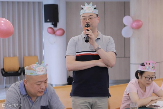 杨奇争总表示:听说生日在上半年的人都很聪明,我也戴上生日帽和大家一起变聪明,同时祝愿大家年年有今日,岁岁有今朝!