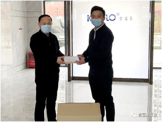 陈迪董事长代表肯富来接受赵海副市长代表市政府赠送的防疫口罩