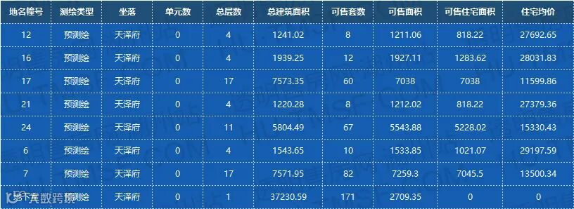 预售审批项目名称:天泽府6#、7#、12#、16#、17#、21#、24#