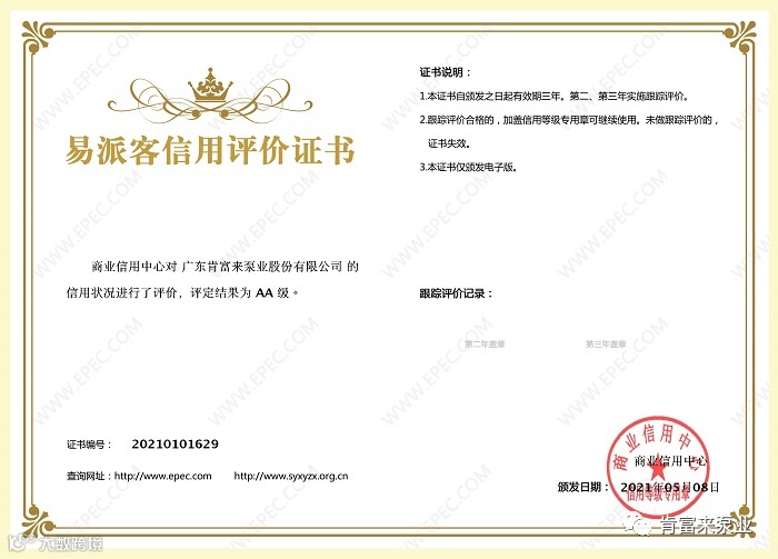 此次企业法人信用认证是继2018年初次认证即将到期后的全新评审认证,企业法人信用等级AA级别反映肯富来履约能力很强,违约风险很低,受不利经济环境的影响较小。再次通过认证体现了肯富来优秀的综合实力,提升了肯富来品牌形象,同时也有利于肯富来在石化系统投标工作的开展,为进一步拓展石油化工行业市场奠定了坚实的基础。