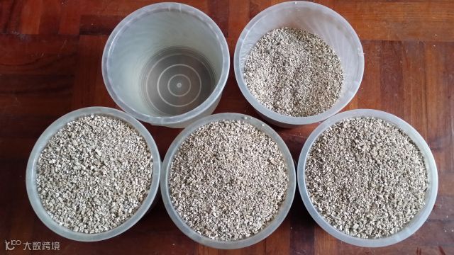 停食、黑颈龟“擦后脚”等都是产前信号,多数龟类在傍晚开始上岸挖洞,试探几天之后就来真的了! 3.孵化材料。从泥沙到桎石,再到无介质孵化,都有人成功。成功孵化的重点是控制温度、湿度,个人还是偏爱桎石(今年也会购买医用培植箱进行尝试)。桎石是由矿石烧制的材料,所以新鲜桎石无需消毒什么的。选择浅色、直径2-6mm桎石,按体积1:3.5和好,第二天再翻动一次,抓一把紧握之感动有“水意”,但没有“唧唧”的水声,松手桎石几乎完全散开,为之合适,封好备用(图5-6)