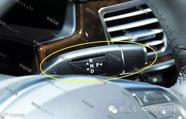 奔驰的较多车型在用怀挡,通过上拨挡杆挂入R挡,下拨挡杆挂入D挡,以及通过按压顶端的按钮挂入P挡。怀挡的优点是节省出中控台的空间,缺点是由于占据了方向盘一侧控制杆的位置,所以把雨刷、转向灯等功能都集中在方向盘另一侧的控制杆上。