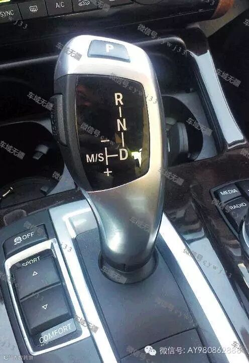 电子式挡杆与变速箱之间采用电子信号进行通信,没有机械连接。代表车型是宝马。当停车时,按一下挡杆上方的P键,即挂上P挡。挡杆向后拉到底,挡杆上“D”亮起,即挂入了D挡;推着挡杆向前,直到“N”亮起,此时挂入空挡;按住挡杆左侧的“unlock”键同时向前推挡杆,直到“R”亮起,就挂入了倒挡。