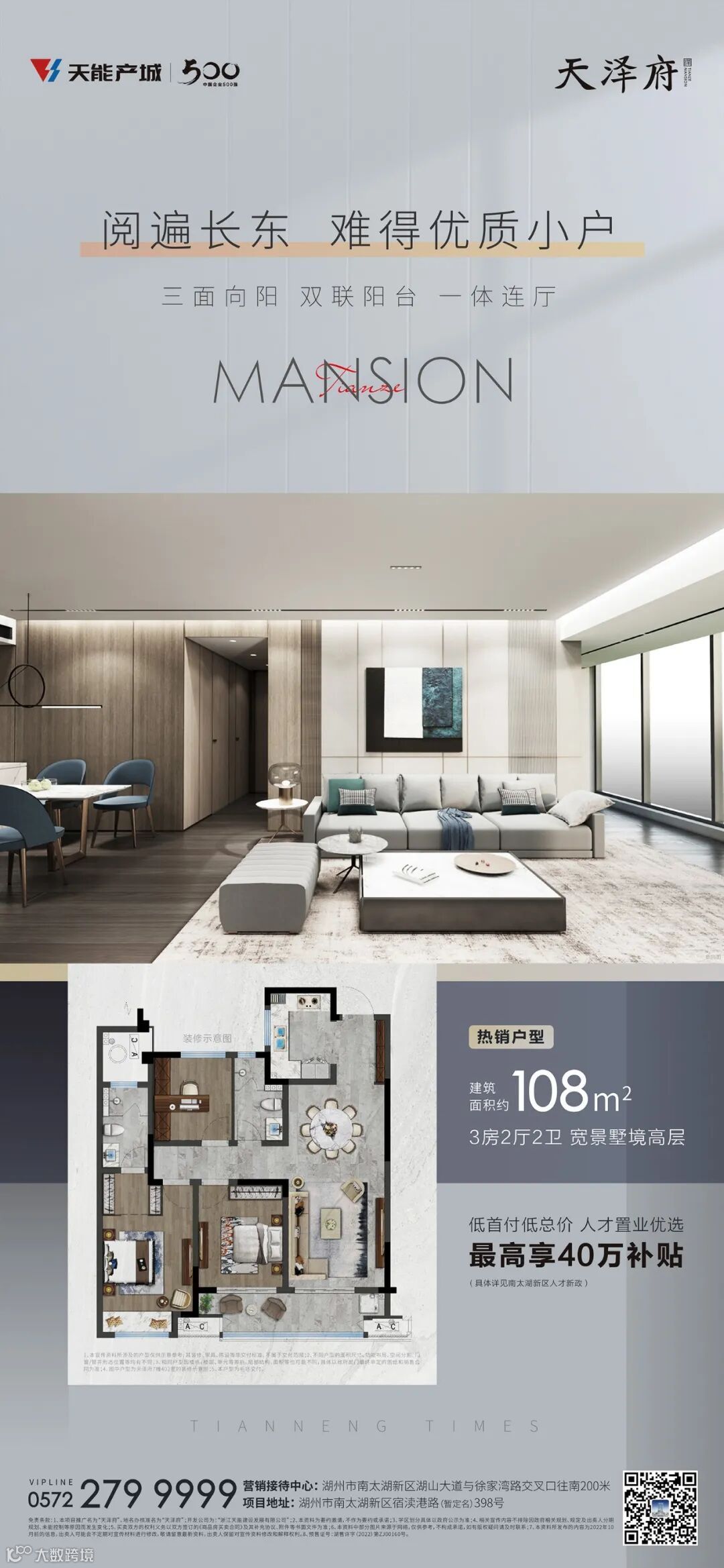 免责条款:1、本项目推广名为“天泽府”,地名办核准名为“天泽府”;开发公司为:“浙江天能建设发展有限公司”;2、本资料为要约邀请,不作为要约或承诺;3、学区划分具体以政府公示为准;4、相关宣传内容不排除因政府相关规划、规定及出卖人分期规划、未能控制等原因而发生变化;5、买卖双方的权利义务以双方签订的《商品房买卖合同》及其补充协议、附件等书面文件为准;6、本资料中部分图片来源于网络,仅供参考,不构成承诺,如有版权疑问请及时联系;7、本资料所发布的内容为2022年11月前的信息,出卖人可能会不定期对宣传材料进行修改,敬请留意最新资料,出卖人保留对宣传资料修改和解释权利。8、预售证号:湖售许字(2022)第ZJ00160号。
